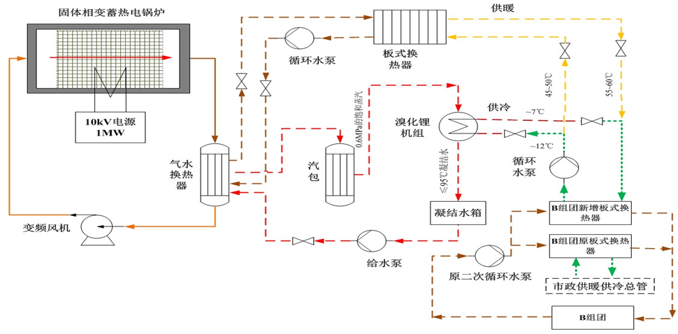 電加熱式固體蓄熱裝置是一種新型的電儲熱系統,電熱儲能技術利用低谷電、風電、光伏等清潔能源轉換成熱能并儲存在蓄熱體內,根據用戶熱量需求逐步自控釋放。
