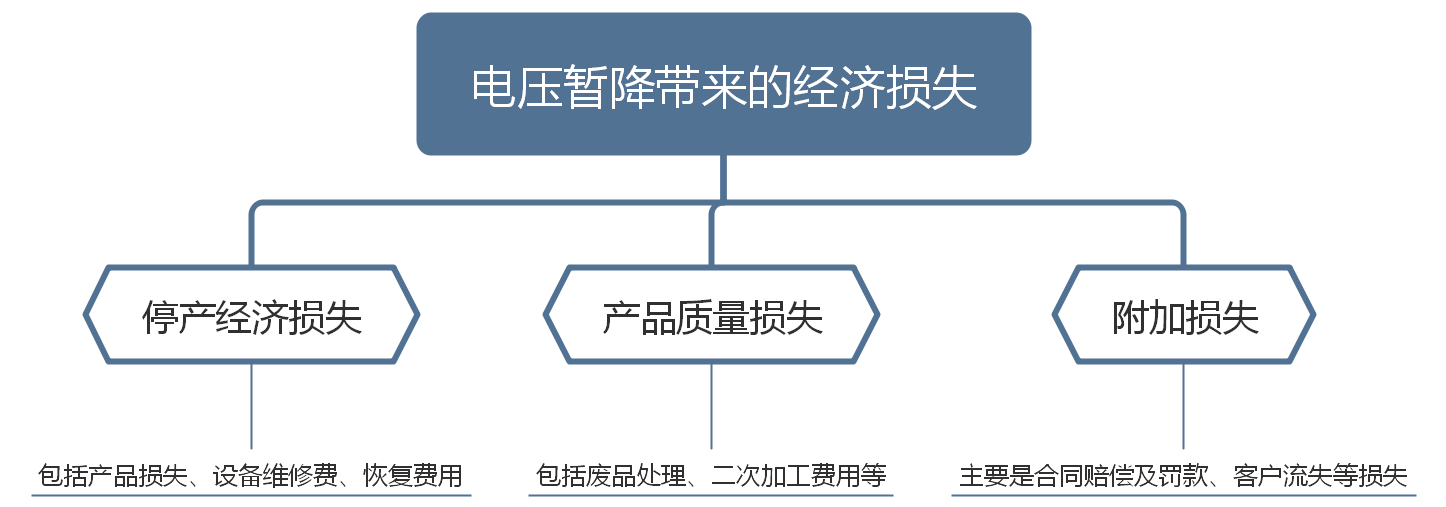 以工業用戶為例,電壓驟降問題對工業用戶的造成的經濟損失,主要包括: